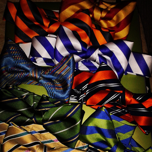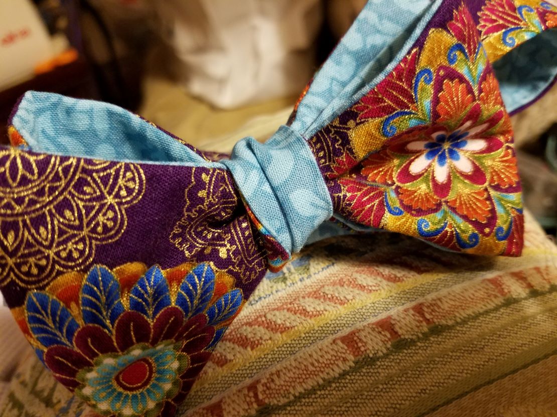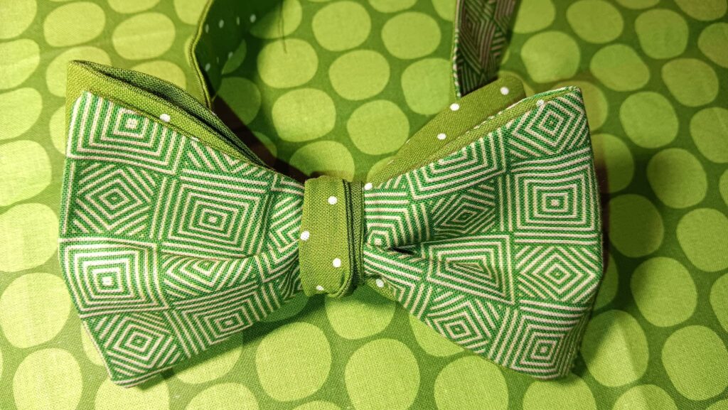They really are, and I have made some very cool bow ties. Some are recycled from neckties, Dad’s old necktie, Grandad’s old necktie, a husband’s old necktie. Some from scratch, and some from interesting patterns. Some machine stitched. Some hand-stitched. Some of my bow ties are staid and conservative, some hipster, some colorful, big, small, and just about every bow tie style you can imagine.